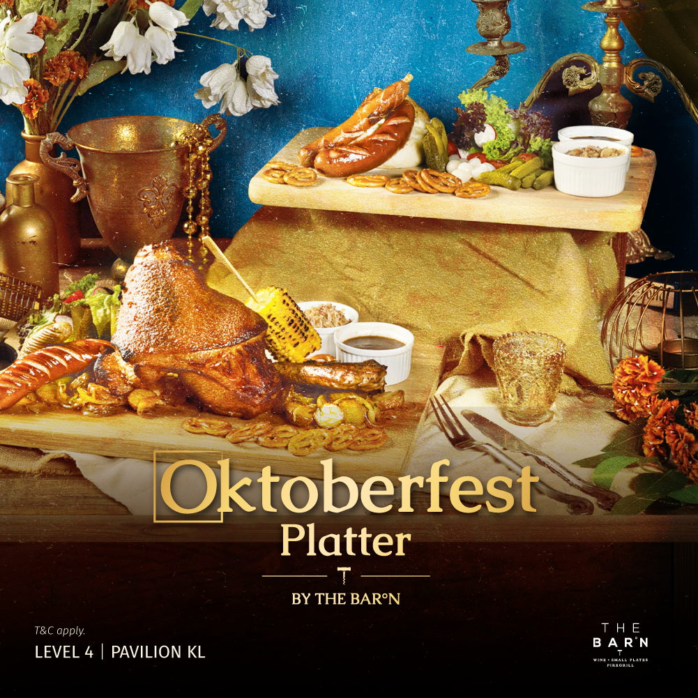 The Barn is the place to enjoy great food and a pint of good German beer! From now until 31st October, enjoy a bountiful feast with The Barn’s Oktoberfest menu featuring mouth-watering sausages, drool-worthy pork knuckle and homemade beer gravy! Paired with some German beer, it is a party! Prost!