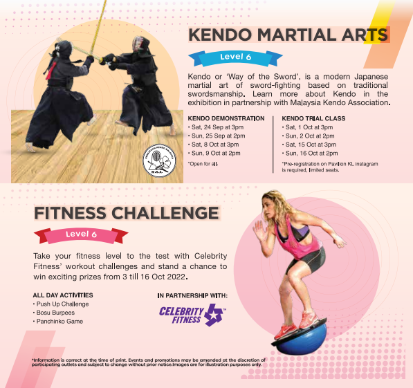 Japan celebrates Taiiku No Hi (Sports Day) on the second Monday of October - a day dedicated to encouraging the love of sports, exercise and good health. Come along to Pavilion KL’s award-winning precinct Tokyo Street to celebrate all things fitness with exciting activities, rewards and deals! In partnership with Malaysia Kendo Association, shoppers can witness a Kendo demonstration and trial class to learn more about this modern Japanese martial art that uses bamboo swords and protective armour. Take your fitness to the next level with Celebrity Fitness’ workout challenges for a chance to win prizes!